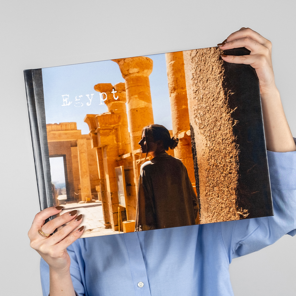 A capa rígida em cartão duro oferece proteção adicional e um acabamento elegante ao teu álbum.